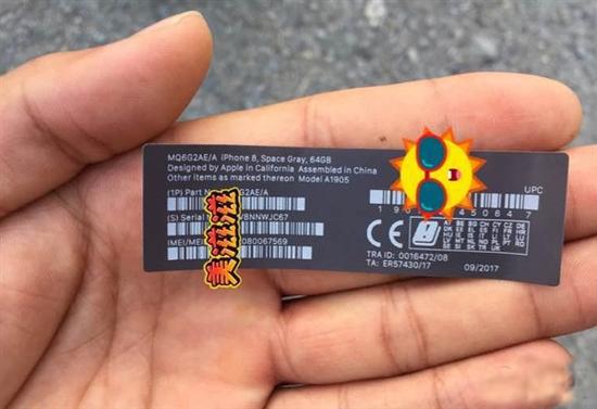 首先我们从包装盒贴纸上看到了名称,的确是iPhone 8,同时还有LCD屏、64GB版本、深空会配色、A1905型号等信息,最有趣的是,贴纸的最右侧下方还有09/2017,这也说明它应该会在本月开卖。